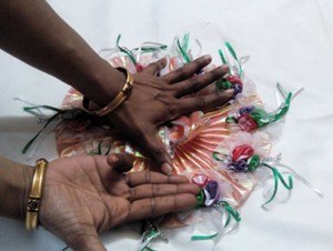 Now the problem is we cannot carry inch tape every time with us. If u know the size of your deity you can select dress by measuring dress by your hand tape. How? Let me show you how you can measure your deity dress with your hands.