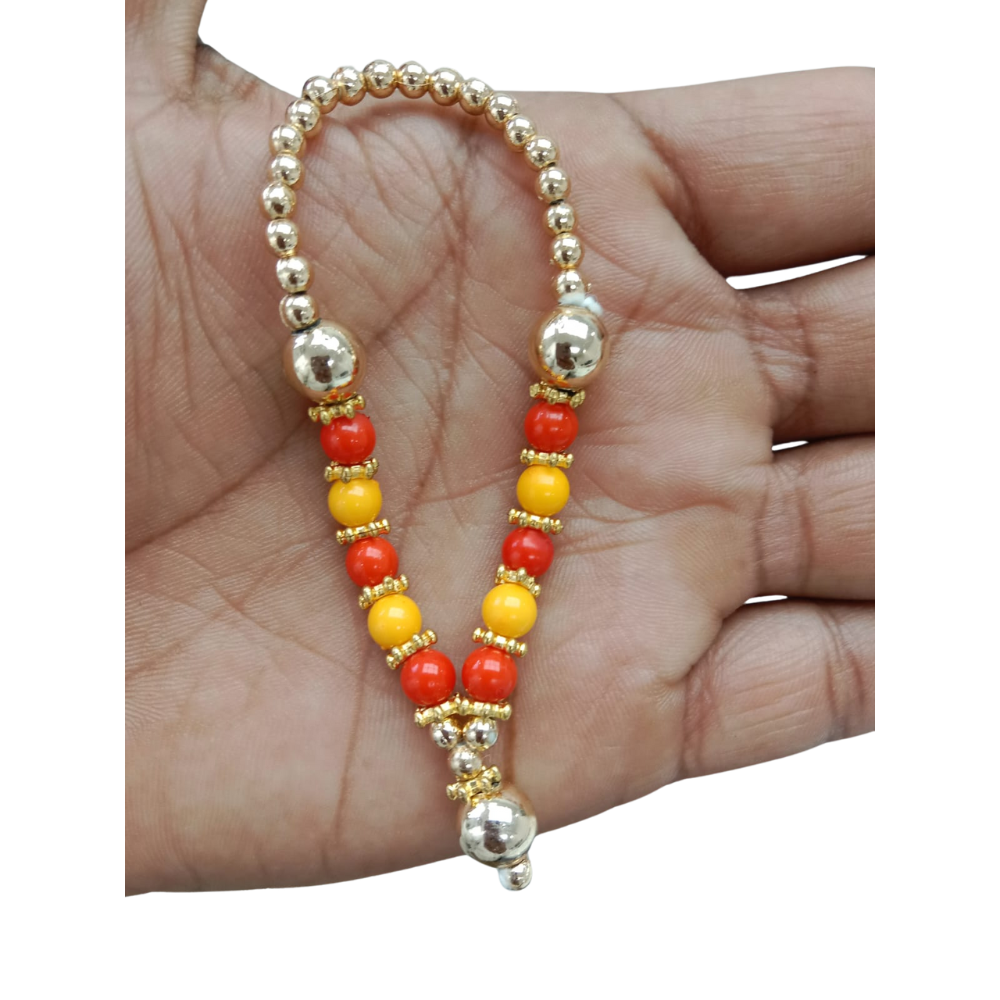 Beads Decorated Mala Laddu Gopal Deity Ornament now brings a truly divine flavor to your spiritual space. The idol of Laddu Gopal or Lord Krishna is a scope of 9.5 CM that is truly enviable for its finely made bead decoration representing class and sanctity. These beads are individually hand strung and placed around the deity, giving it a charming appearance along with symbolic meaning of purity, devotion, and divine grace.