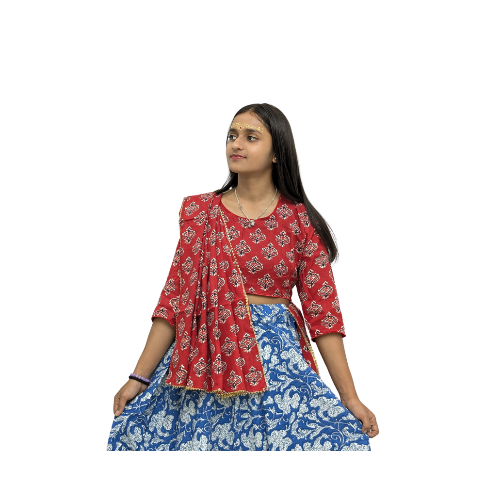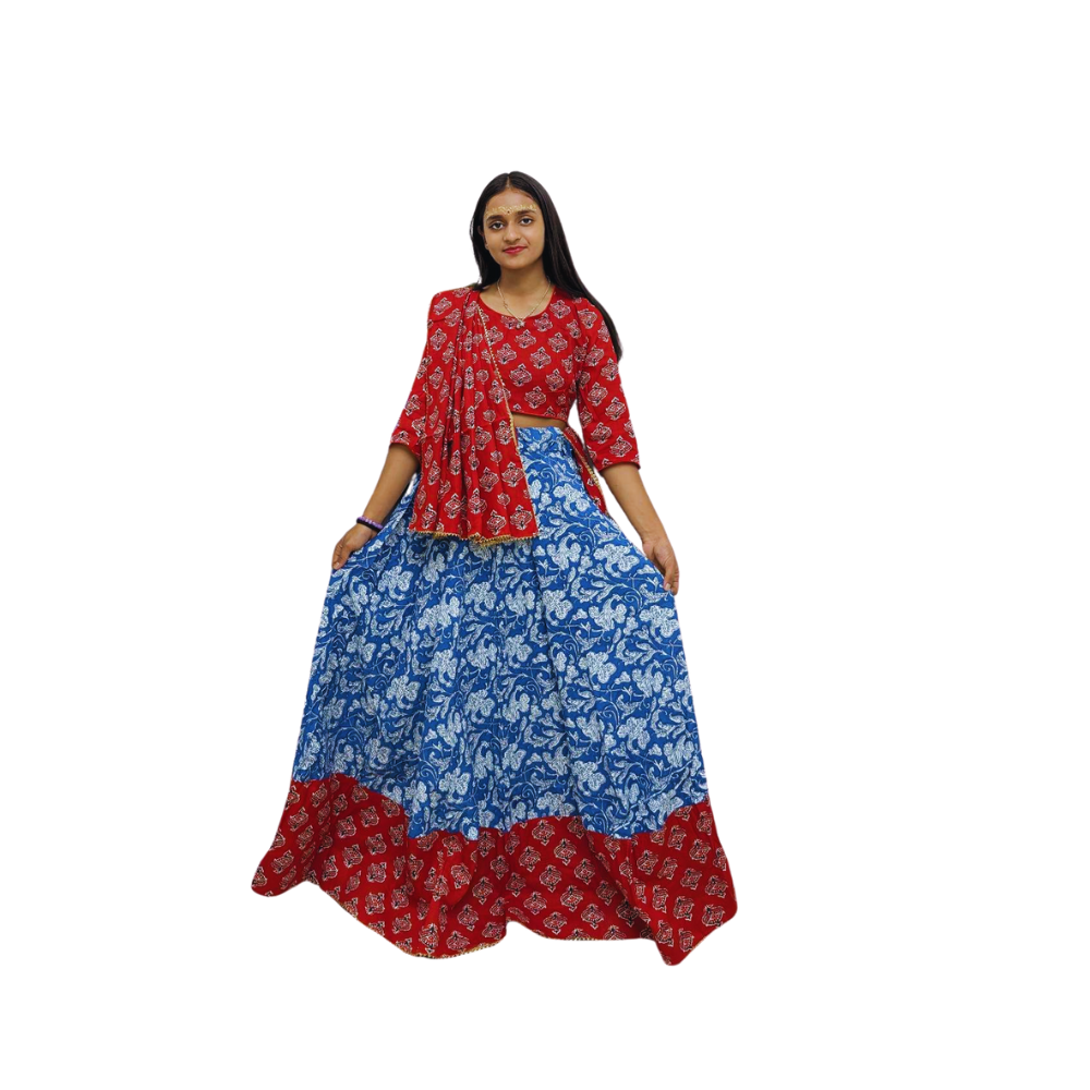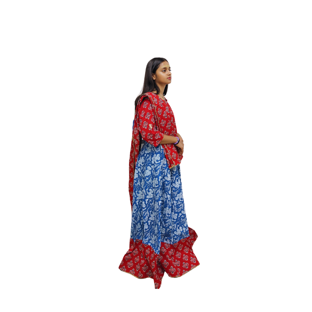 Blue Colour Gopi Dress | Floral Print | Special Occasion | Free Size | Cotton Dress