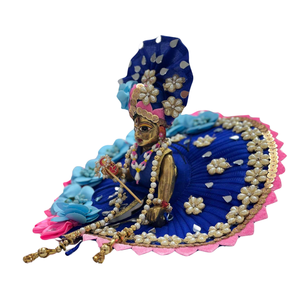Decorate your Kanha Gopal with the Blue Net Laddu Gopal Dress, an exquisite outfit that is created to exuberate beauty and grace of the deity. The detailing and colors making this dress a special one to wear for all occasions, temple decoration, or just joyous celebrations.