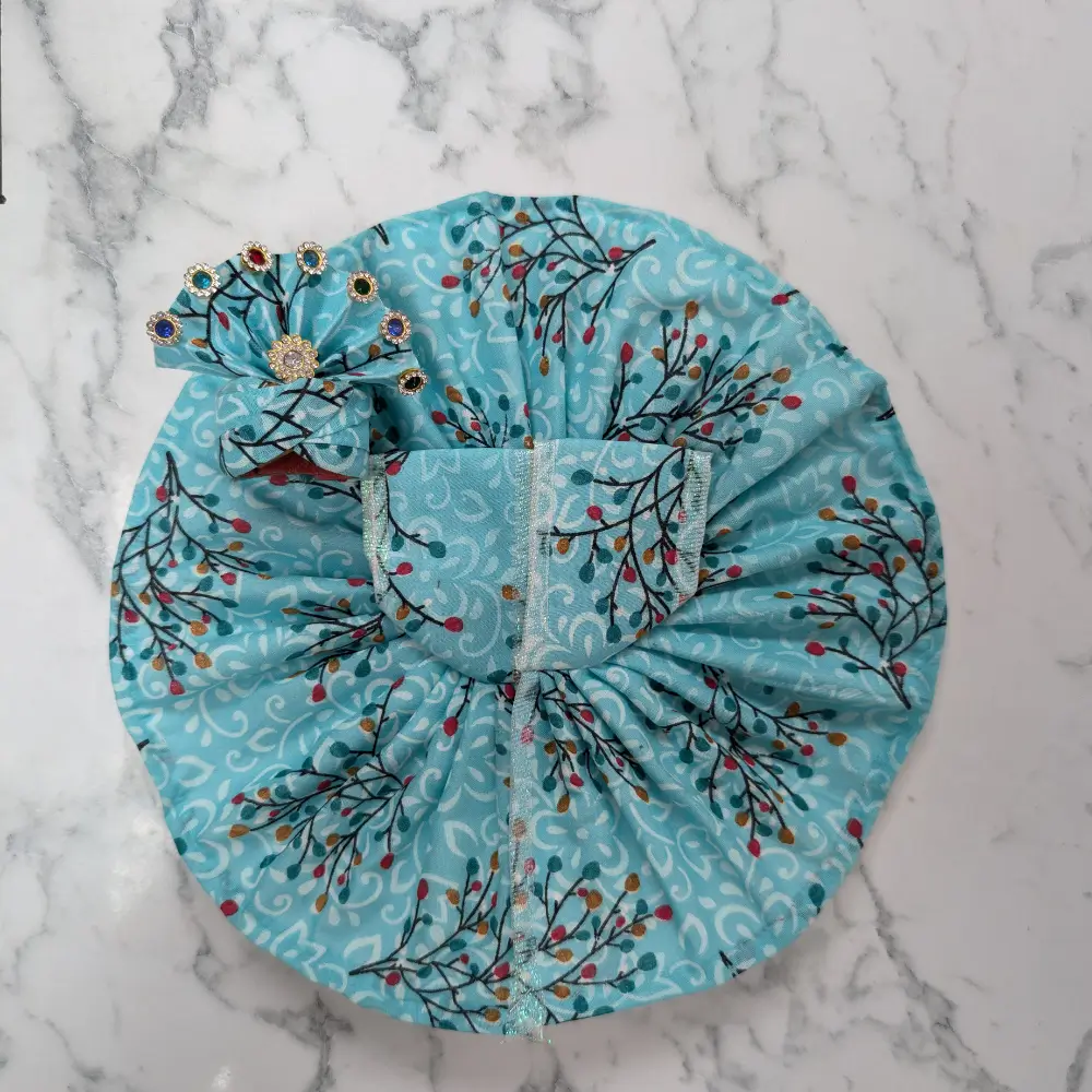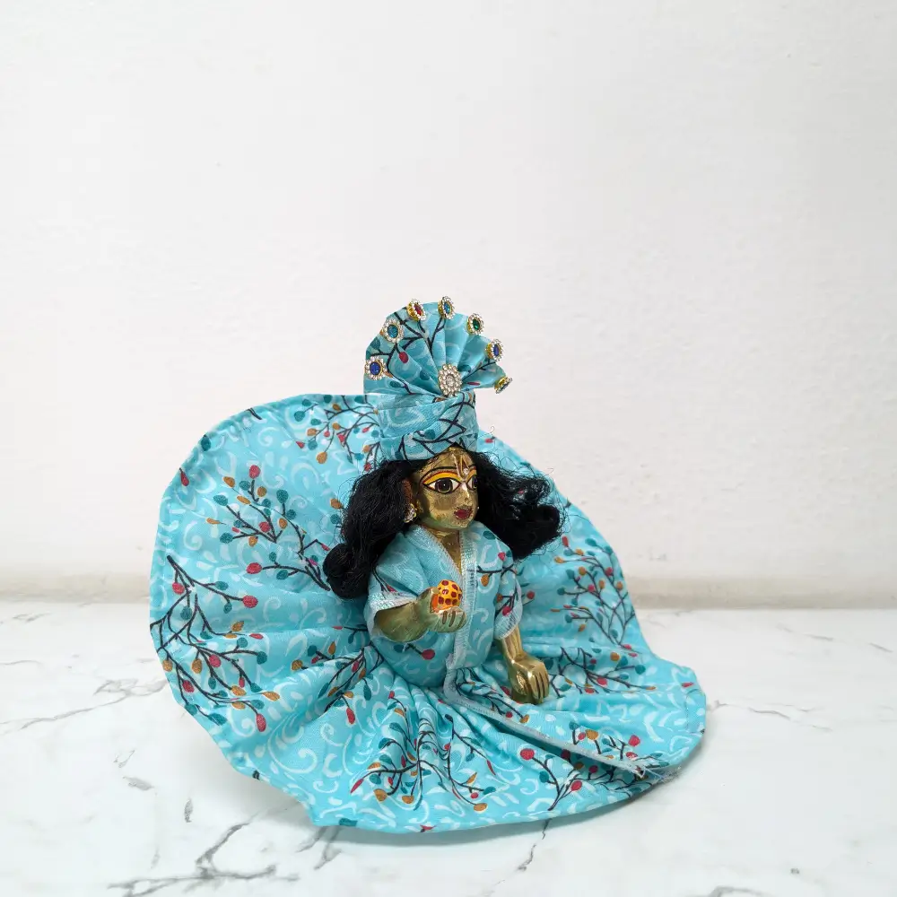 Laddu Gopal Designer Blue Floral Summer Cotton Poshak with Pagri/Mukut | Size-0,1,2,4,5