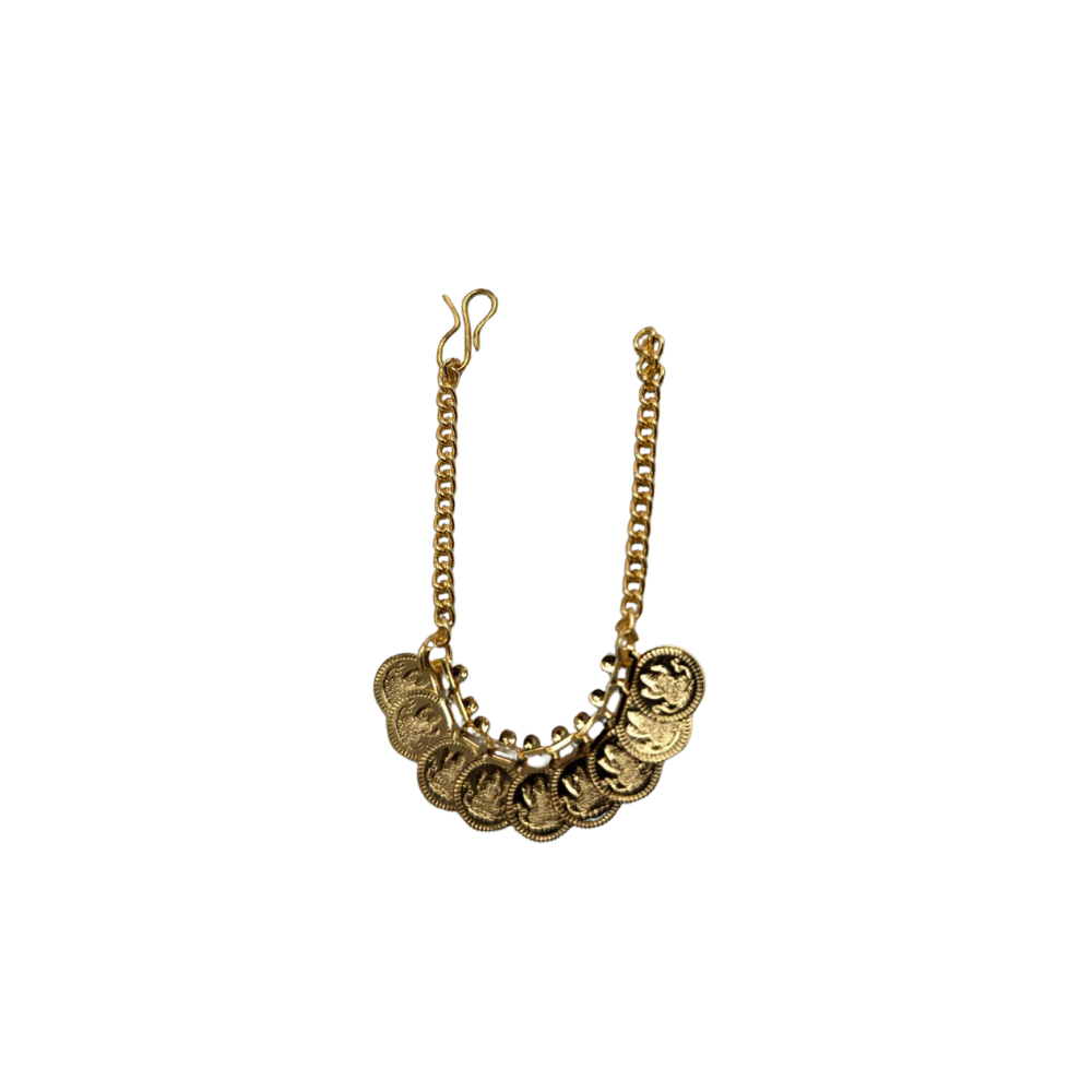 The majestic Laddu Gopal Coin Mala in a gold finish can bring forth unprecedented grandeur in an already divine-looking deity. Made with love and devotion, the delicate mala is a good complement to the Laddu Gopal idol. Endowing the idol with an old-world aura and grace. Measuring 5.5 cm in length. This necklace is very well suited for small- to medium-size idols and can indeed be a much-needed piece for any worship room.