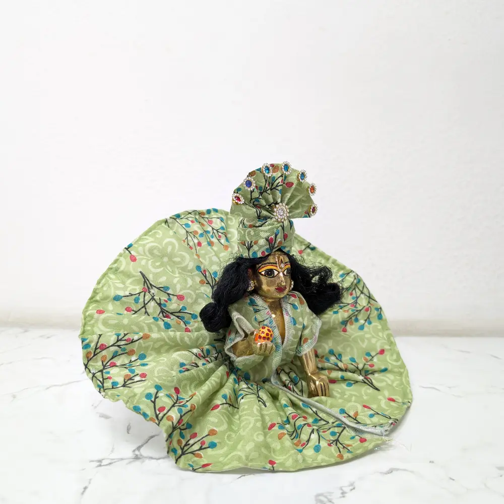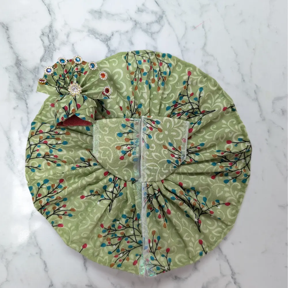 Laddu Gopal Designer Green Floral Summer Cotton Poshak with Pagri/Mukut | Size-0,1,2,4,5