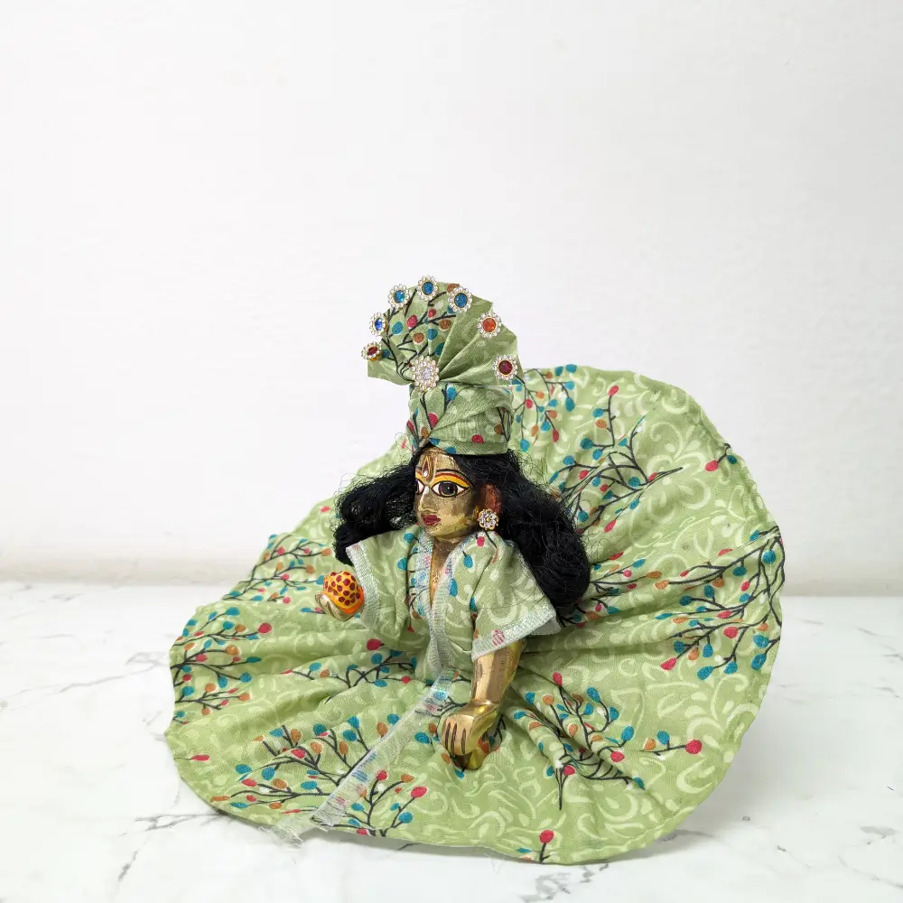 Garmiyo mein heavy silk ya polyester pehnana Lalla ke liye uncomfortable ho sakta hai. Hamari Laddu Gopal Summer Poshak cotton fabric ki wajah se hawa ko pass hone deti hai (breathable hai). Iska soft texture brass ya marble ki murtiyo ke liye safe hai. Saath hi, iska bright green rang mandir mein ek nayi ronak aur positivity lata hai.