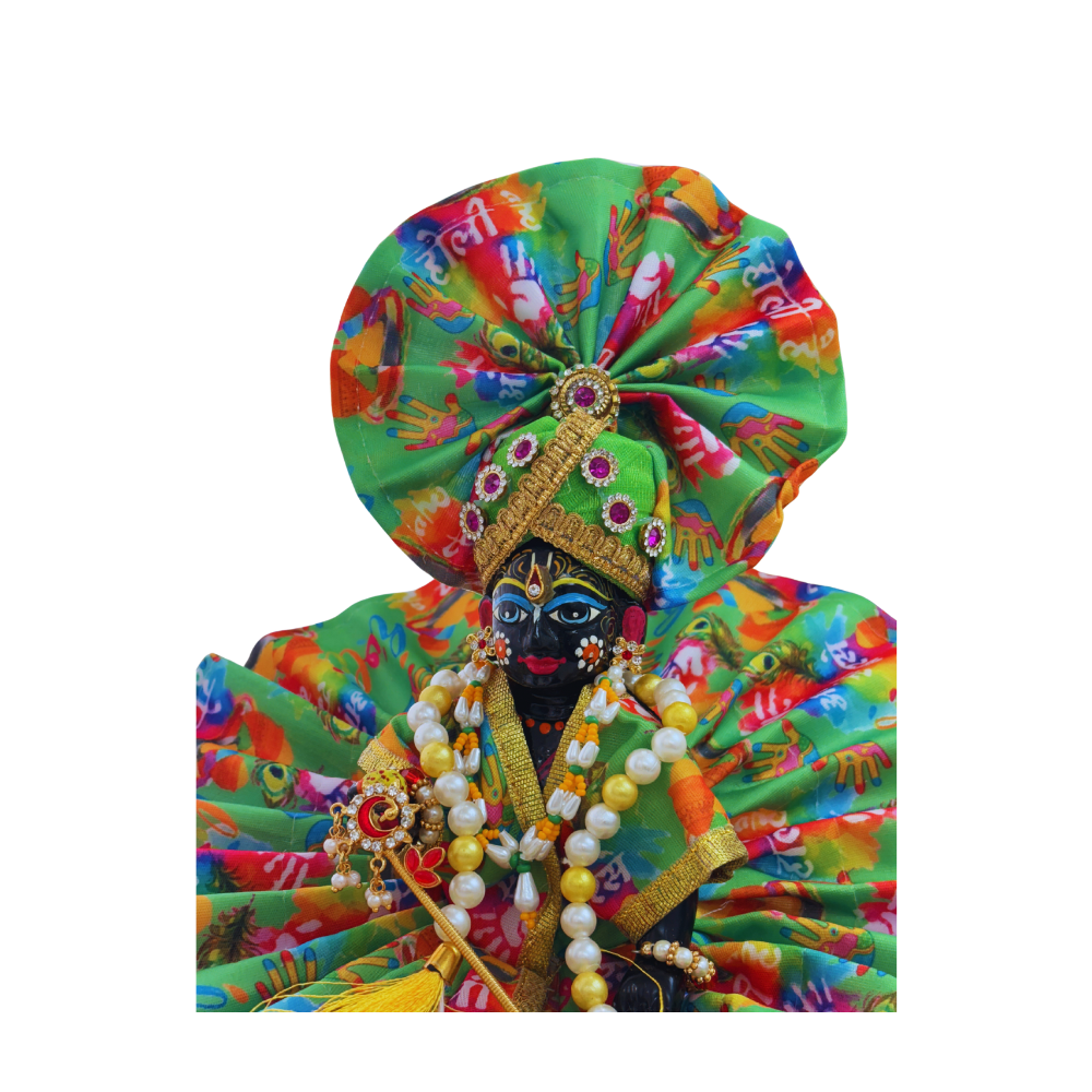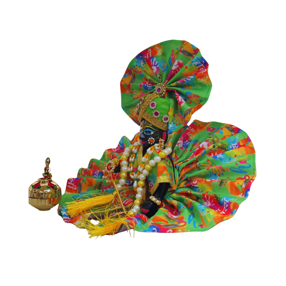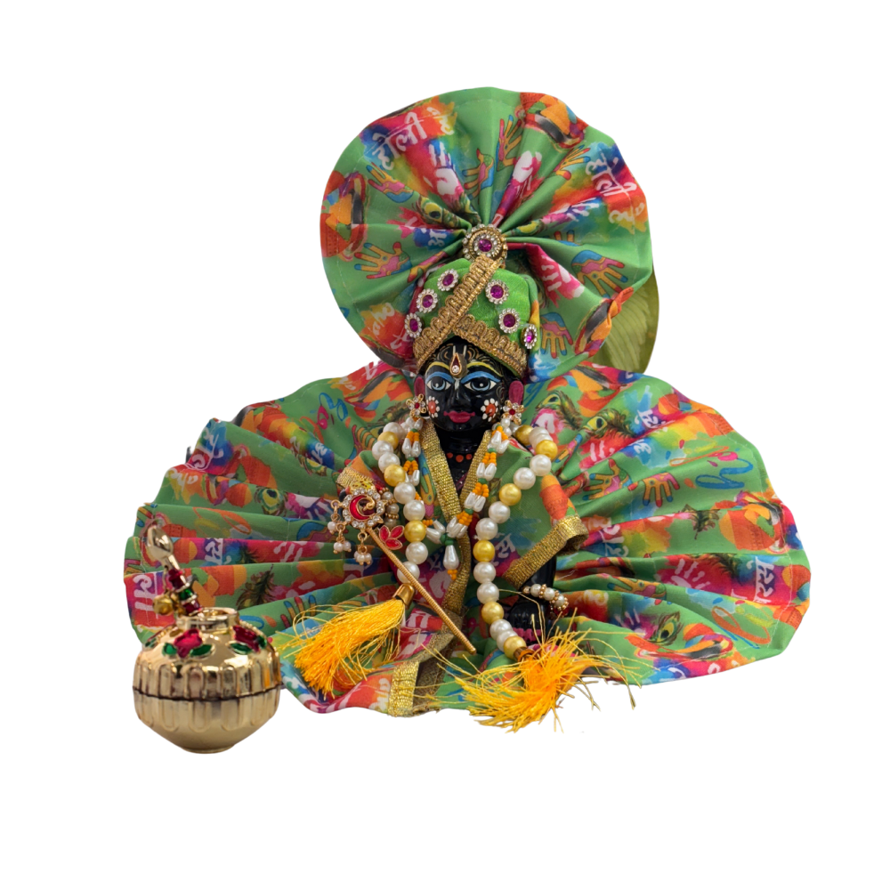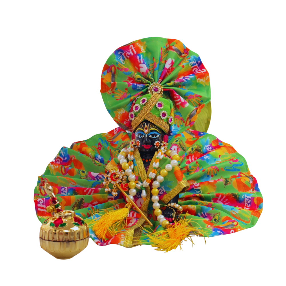 Green color symbolizes freshness, harmony, and dedication. It further adds vibrancy to your deity during Holi celebrations and lends it a divine touch. The design captures the exuberance of the festival in totality.
