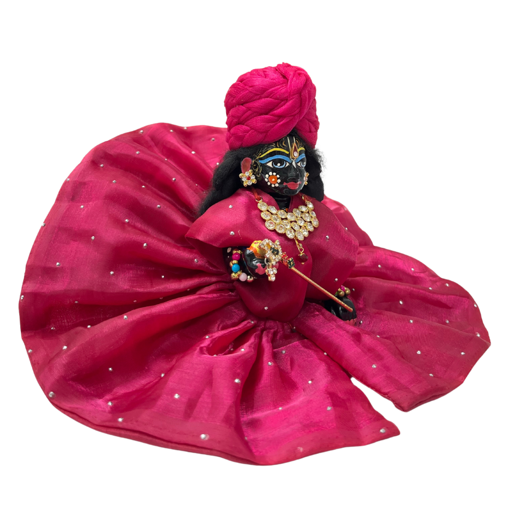 Timeless for enriching your puja space or seeking a beautiful gift for a familiar devotee. The pink silk dress for Laddu Gopal is nothing less than an eternal divine gift. The beauty that represents the gift of love and tradition in the happiness of wearing the deity in the best attire.