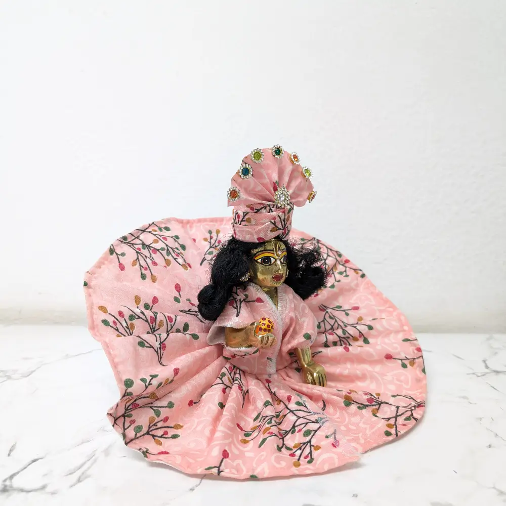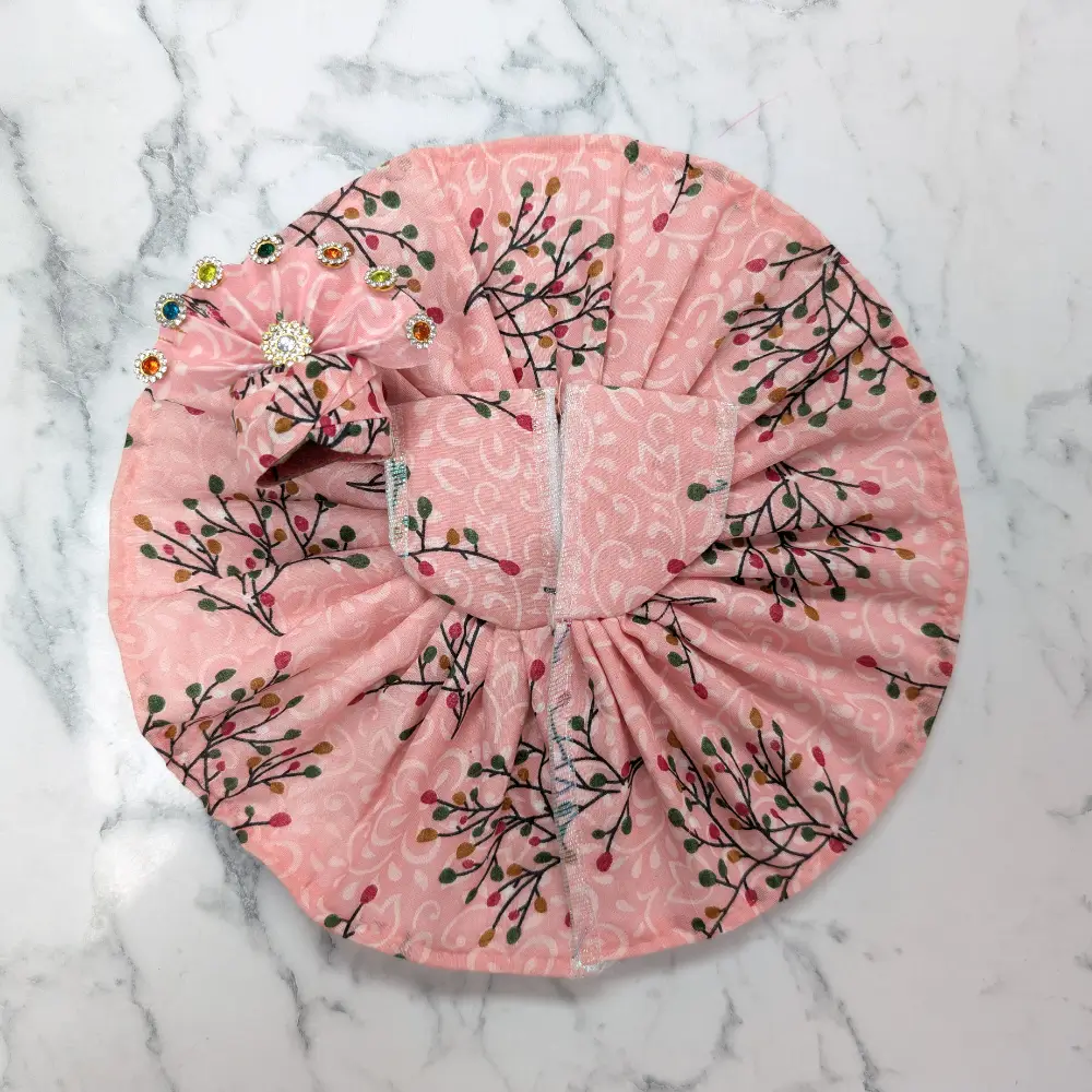 Laddu Gopal Designer Pink Floral Summer Cotton Poshak with Pagri/Mukut | Size-0,1,2,4,5