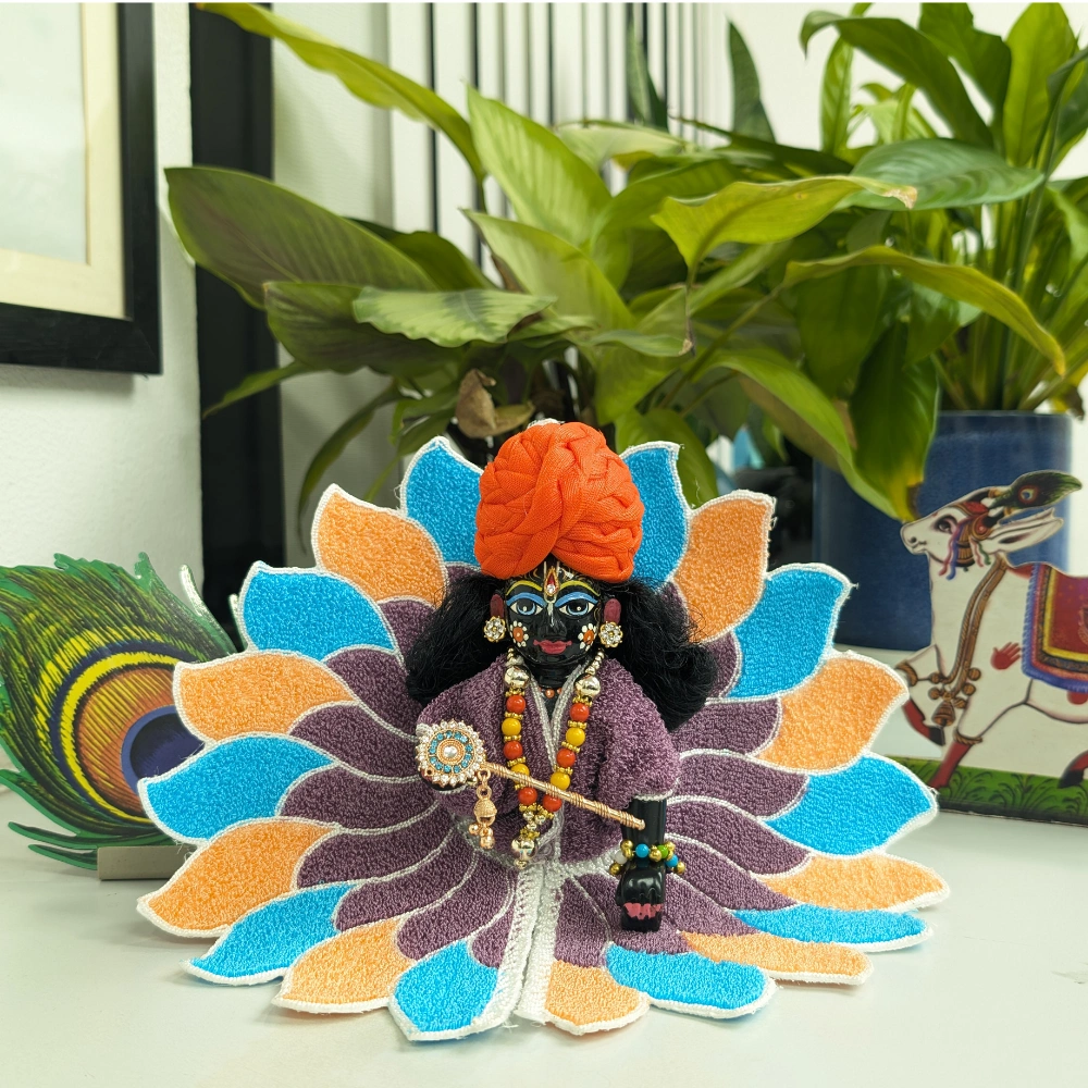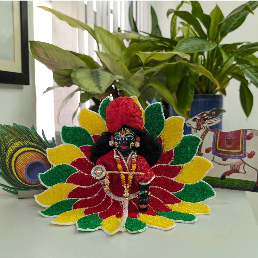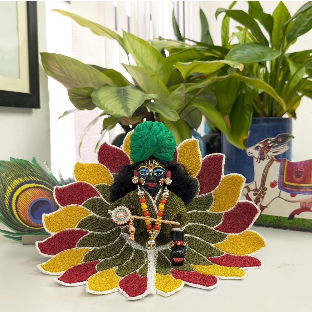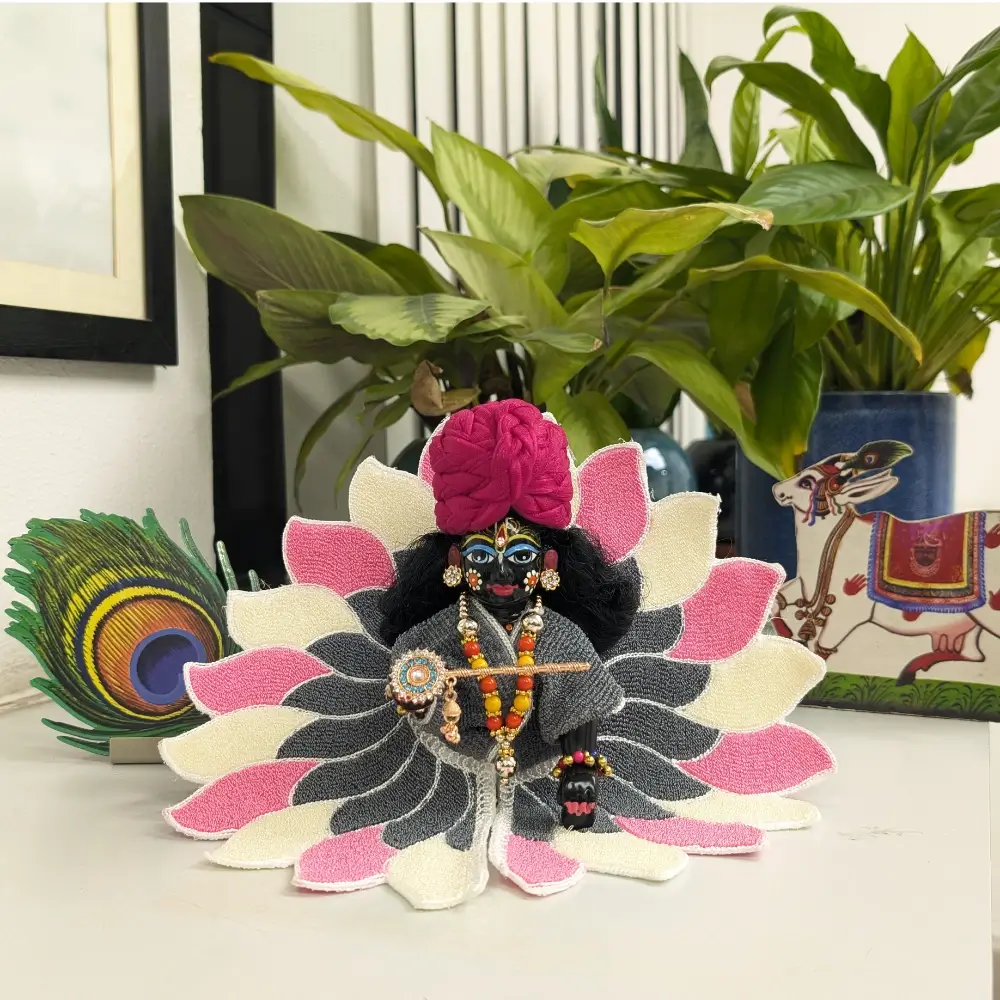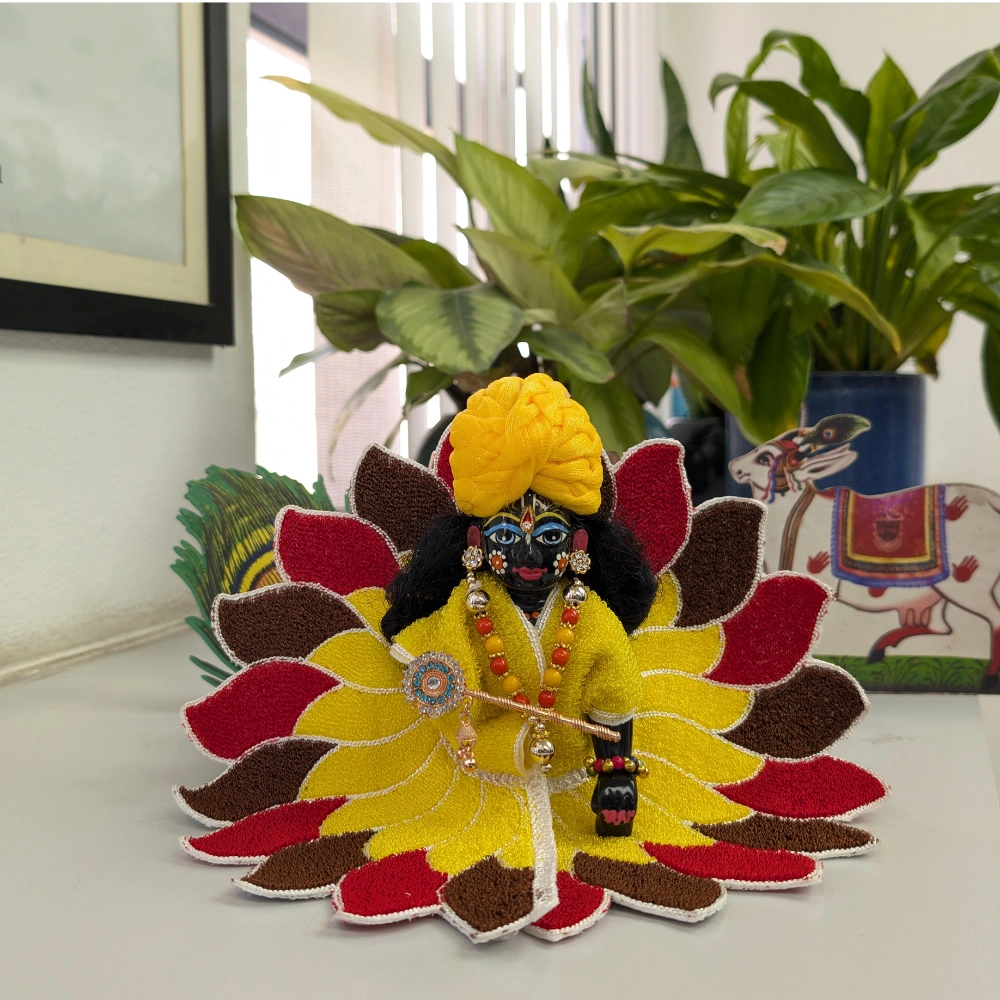Is Laddu Gopal Summer Cotton Poshak ki sabse badi visheshtha iska unique sunflower petal pattern hai. Isme aapko vibhinn rangon ka mel milta hai jaise ki Yellow-Teal, Red-Green, aur Orange-Purple. Har poshak ko bariki se design kiya gaya hai taaki Krishna ji ka swaroop aur bhi nikharkar aaye. Is poshak ke saath matching Laddu Gopal Mukut Pagdi aur Kanha ji ki Bansuri pehnane se unka shringar purn ho jata hai.