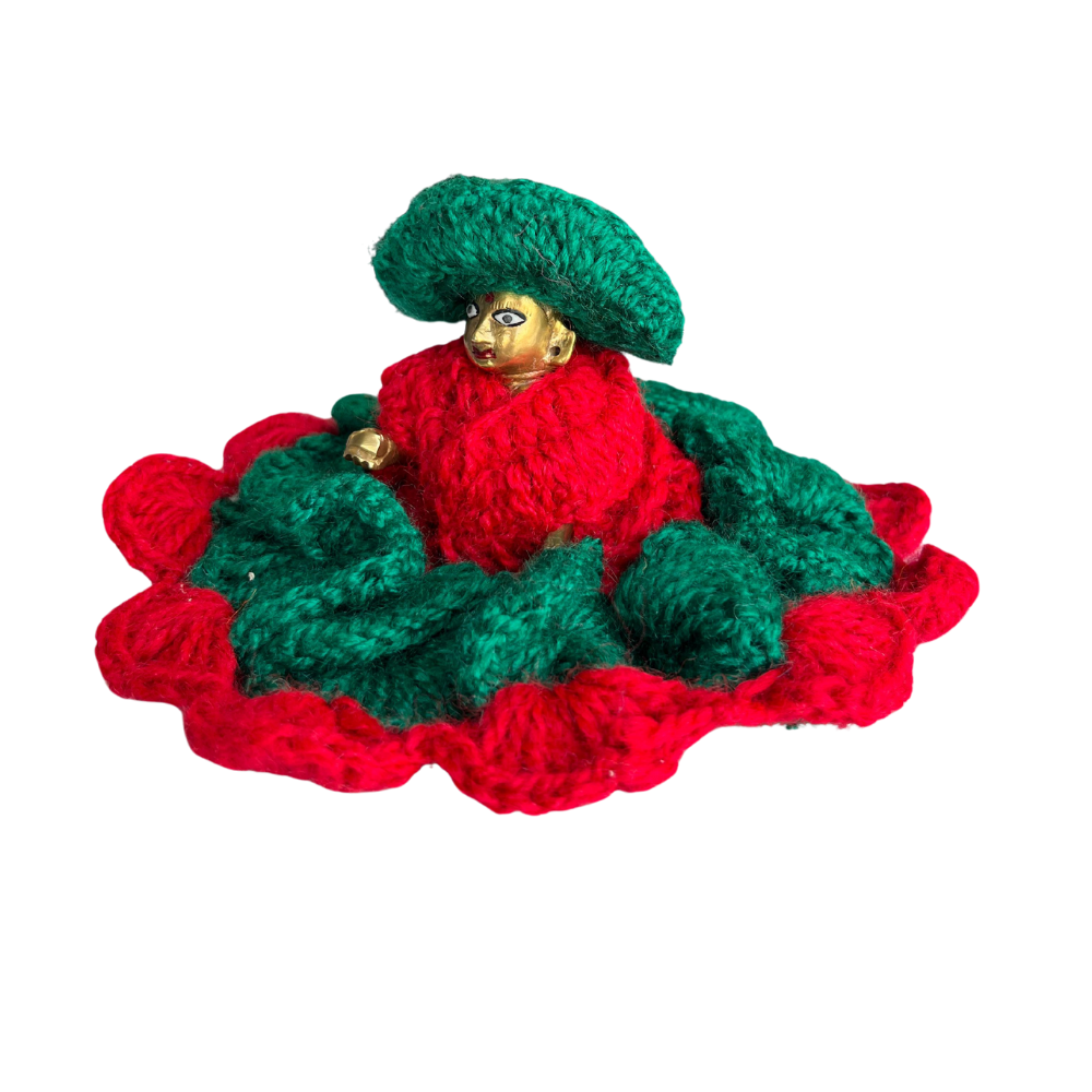 Hope into our special Laddu Gopal Woollen Dress, which includes a cozy green and red woolen outfit with a matching headgear made to keep your Kanha Ji warm and elegant during the winter. Made of high-quality wool, this outfit blends comfort and elegance, giving your Laddu Gopal Jewellery a bright and exquisite appearance.