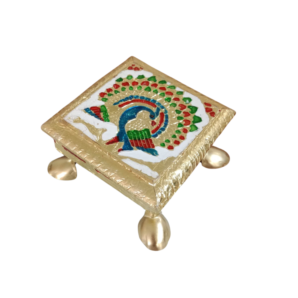 Made from the finest material, this chowki for God idols boasts detailed carvings, and traditional patterns. And a highly polished surface, all of which are a reflection of devotion and great craftsmanship. Sturdy yet elegant, it deserves to hold Laddu Gopal Ji with utmost respect and reverence. The finely detailed edges and intricately carved designs add divine beauty, making the chowki an ideal utensil for puja.