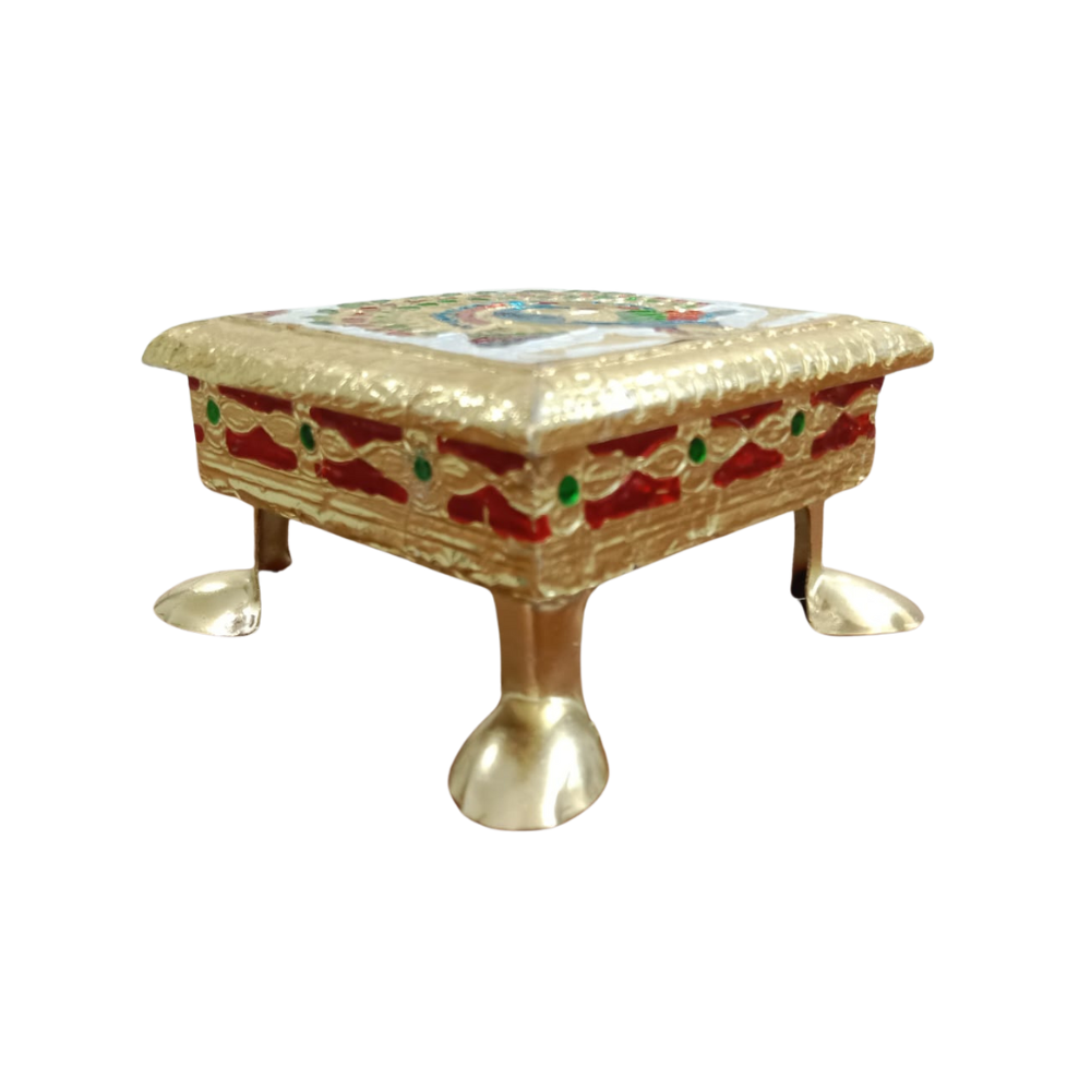 Deserving to decorate small to medium-sized idols, this chowki for God’s idols suits any altar, home temple, or spiritual nook. Whereby it becomes easy to set up and use for rituals and prayers. From serving as a timeless addition to any devotional space for your Laddu Gopal Ji or as an excellent gift for any devotee. This beautifully crafted chowki qualifies as a beautiful choice.