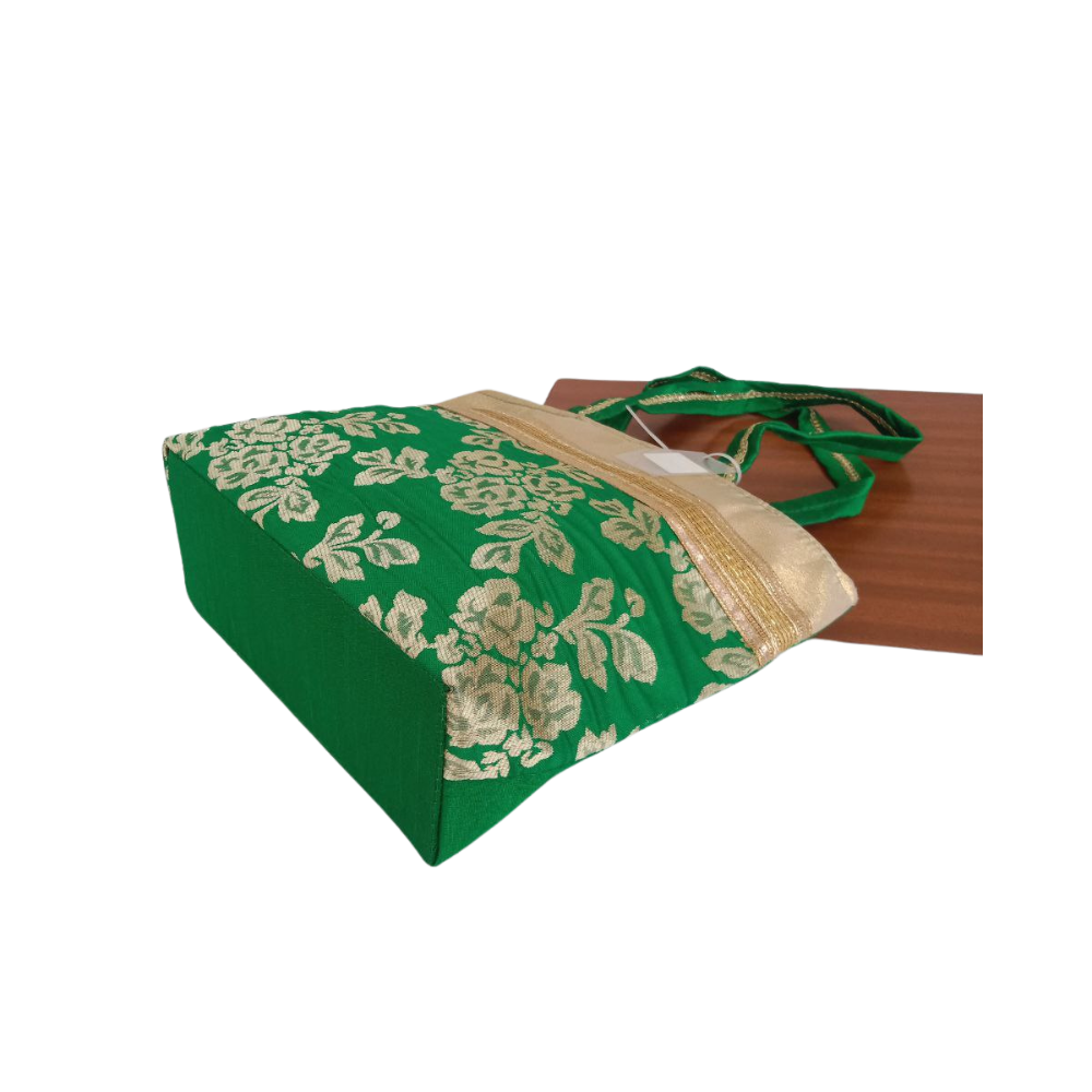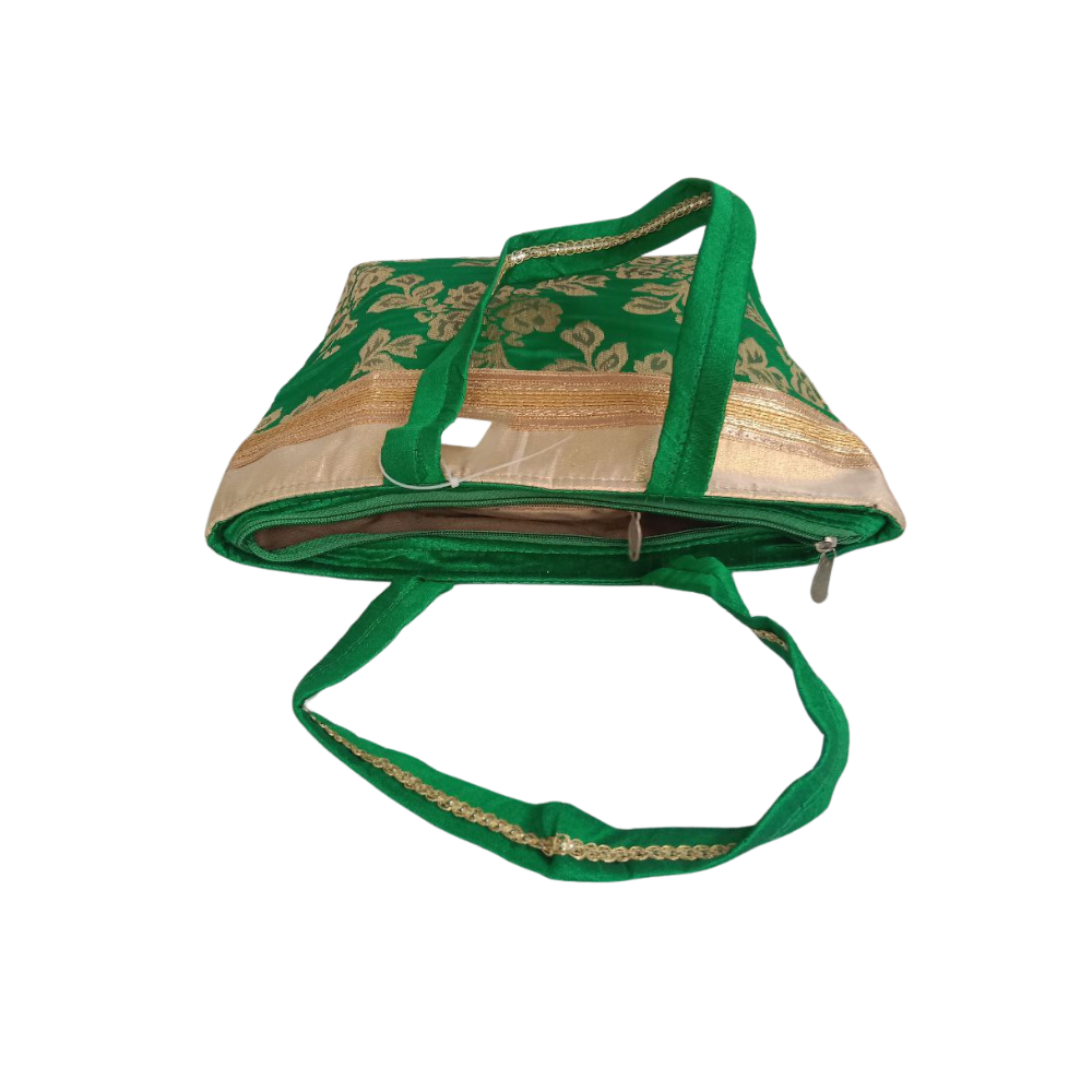 Its- eye-catching design and size are just what one would want for a festive occasion, wedding, puja, and traditional celebrations. Many women like using this bag during temple visits because it can graciously hold sacred items. For instance, the Mahashringar Flower Design Hand-held Bag can conveniently store a laddu gopal dress, while gracefully securing it from dirt and damage and retaining its divine essence.