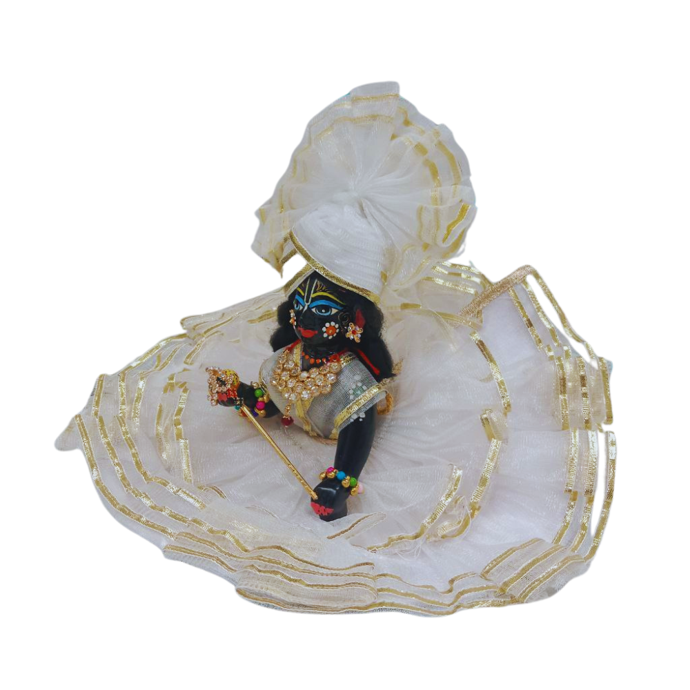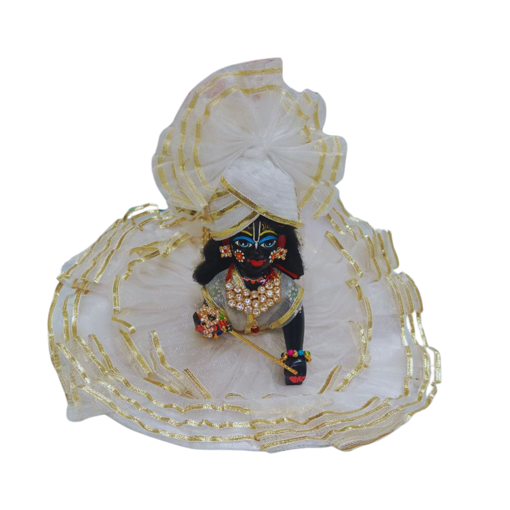 Adore and celebrate the divine charm of Laddu Gopal with our exclusive Birthday Special dress with mukut. Encapsulating serenity and elegance in white. This beautiful dress set is especially drawn to praise the holy occasion of Bal Gopal’s birthday or Janmashtami. It is a unique medium to express devotion and love.
