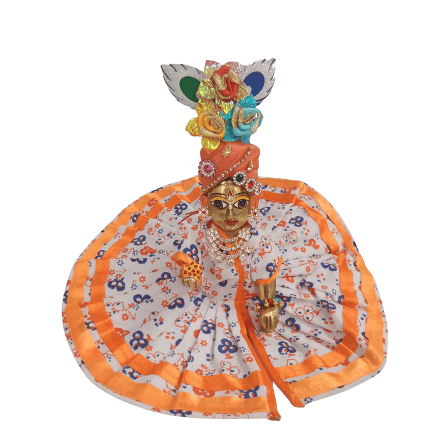 To dress your cherished Laddu Gopal idol in divine elegance, decorate him with a designer dress vibrant in orange color: The Mahashringar Laddu Gopal Designer Dress. Designed in Size 0, the designer dress is meant to grace your deity on special occasions, festivities, or daily worship. A carnival for the spirit, orange symbolizes ardor, devotion, and positivity, thus being the suitable color option to grace your abode or temple with joy and spiritual energy.