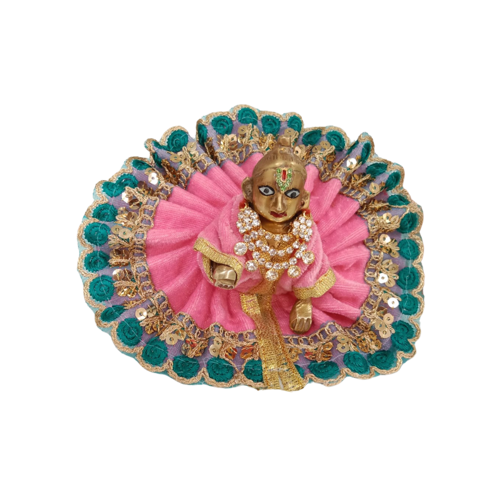 Adorn your Laddu Gopal Ji idol with this stunning Kanha Ji Velvet Dress in pink to bring a touch of luxury, devotion, and festive beauty to your spiritual space. Let the divine charm of Lord Krishna shine through every detail.