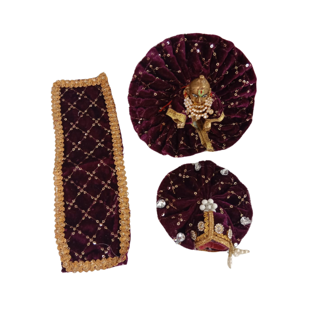 Adorn your Laddu Gopal Ji idol with this elegant Kanha Ji Velvet Dress in purple to bring a divine blend of luxury, devotion. And festive beauty to your spiritual space. Let the regal charm of purple reflect the sacred energy and bliss of Lord Krishna in every detail.