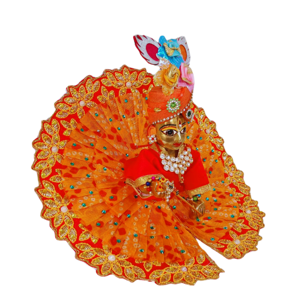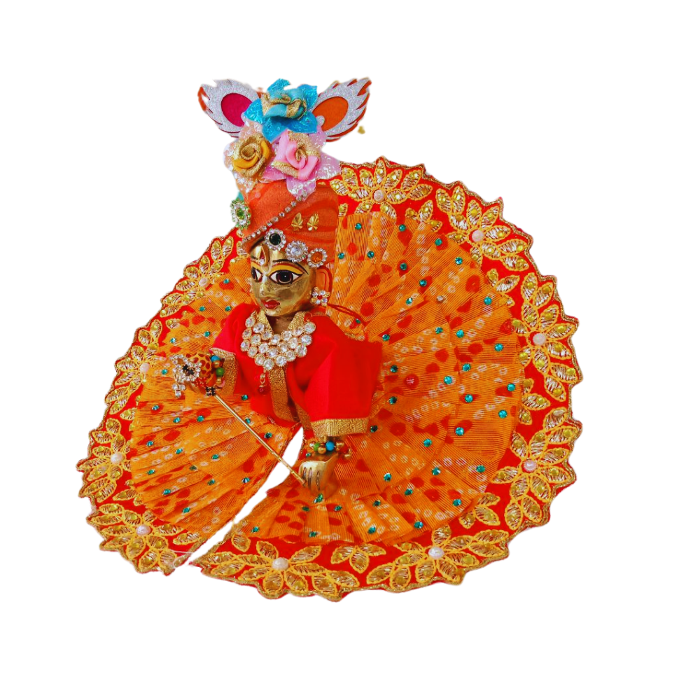 The flower design dress fits splendidly with other pieces like mukuts, malas, and especially a Laddu Gopal bansuri. As part of our carefully curated Laddu Gopal accessories collection, it beautifully completes your deity’s look. You can also pair it with thrones and flutes to create an enchanting setup for your Bal Gopal. This dress makes a genuine and thoughtful gift for temple offerings, housewarming ceremonies, and devotional gatherings.