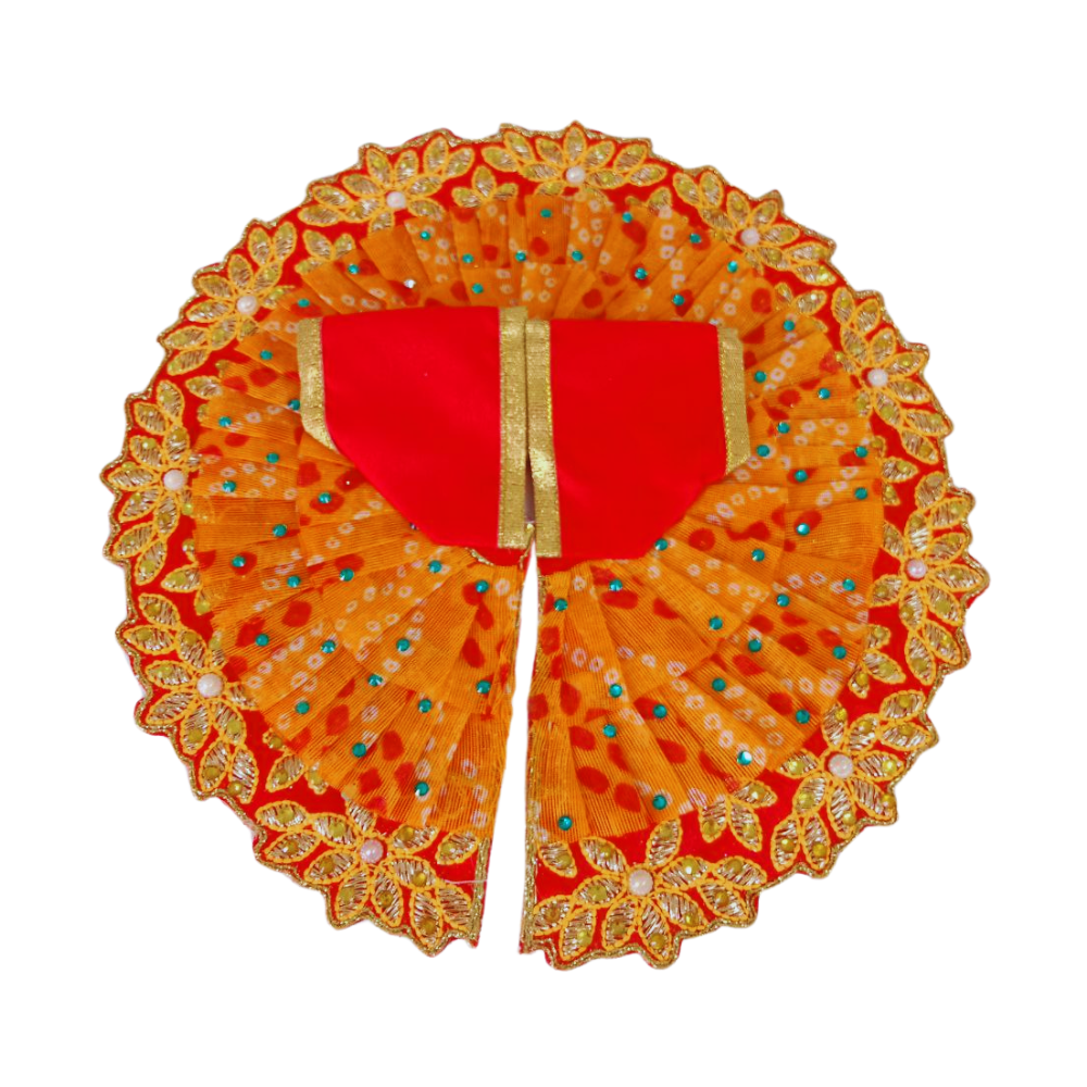 Fashioned from premium soft fabric, this dress drapes gently and feels feathery-light over your Laddu Gopal ji. Superior stitching and intricate detailing ensure not only extra beauty but also long-lasting durability. It elegantly flows to give your deity a serene and magnificent presence in your home temple or puja room. The smooth fabric enhances the spiritual ambiance and keeps your Bal Gopal comfortable and divine at all times.
