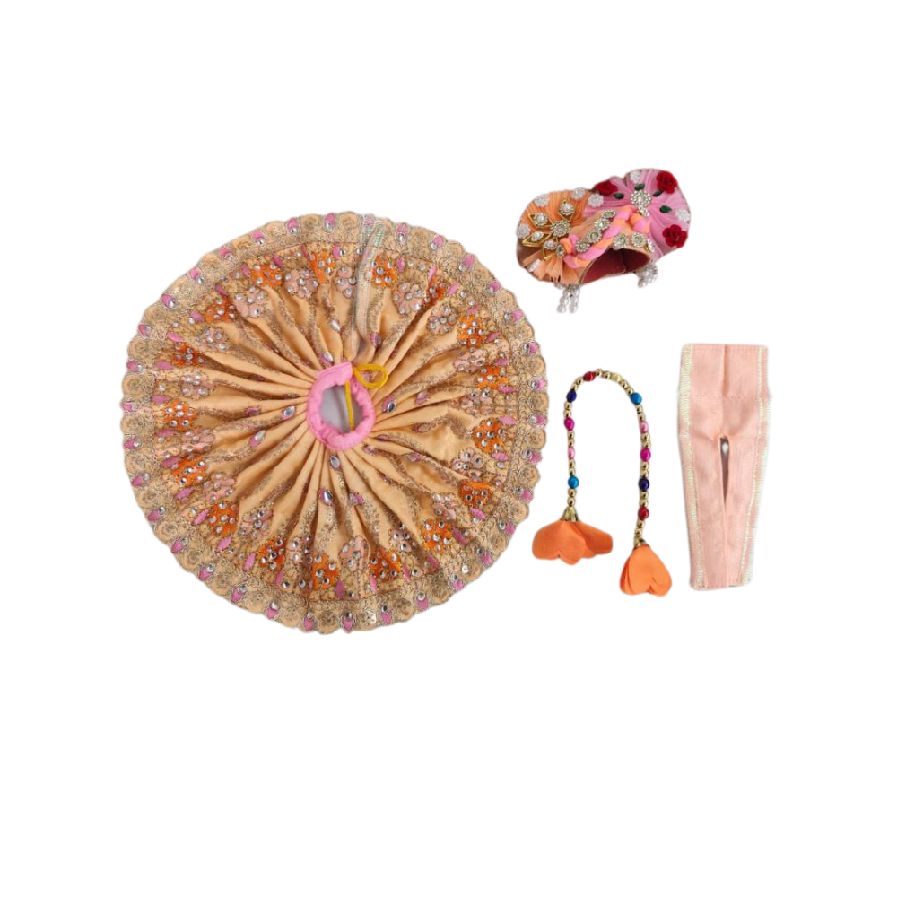 Laddu Gopal Kolkata Style Dress | Peach Color | Heavy work dress | Size 2, 5