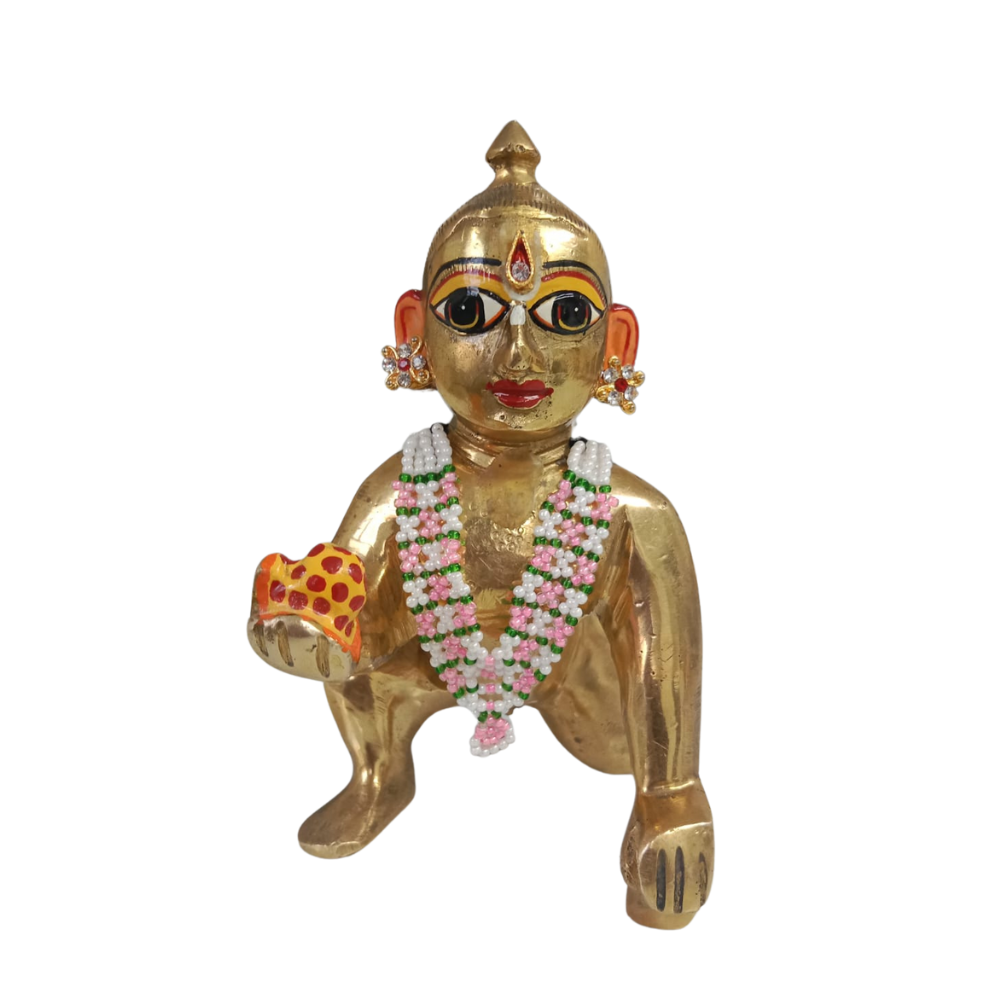 Handcrafted by craftsmen who know the sacred tradition well every pearl is placed with precision and devotion. The soft luster of the mala would harmonize with the very feeble presence of the deity Laddu Gopal. Thus giving a perfect blend of elegance and divinity.