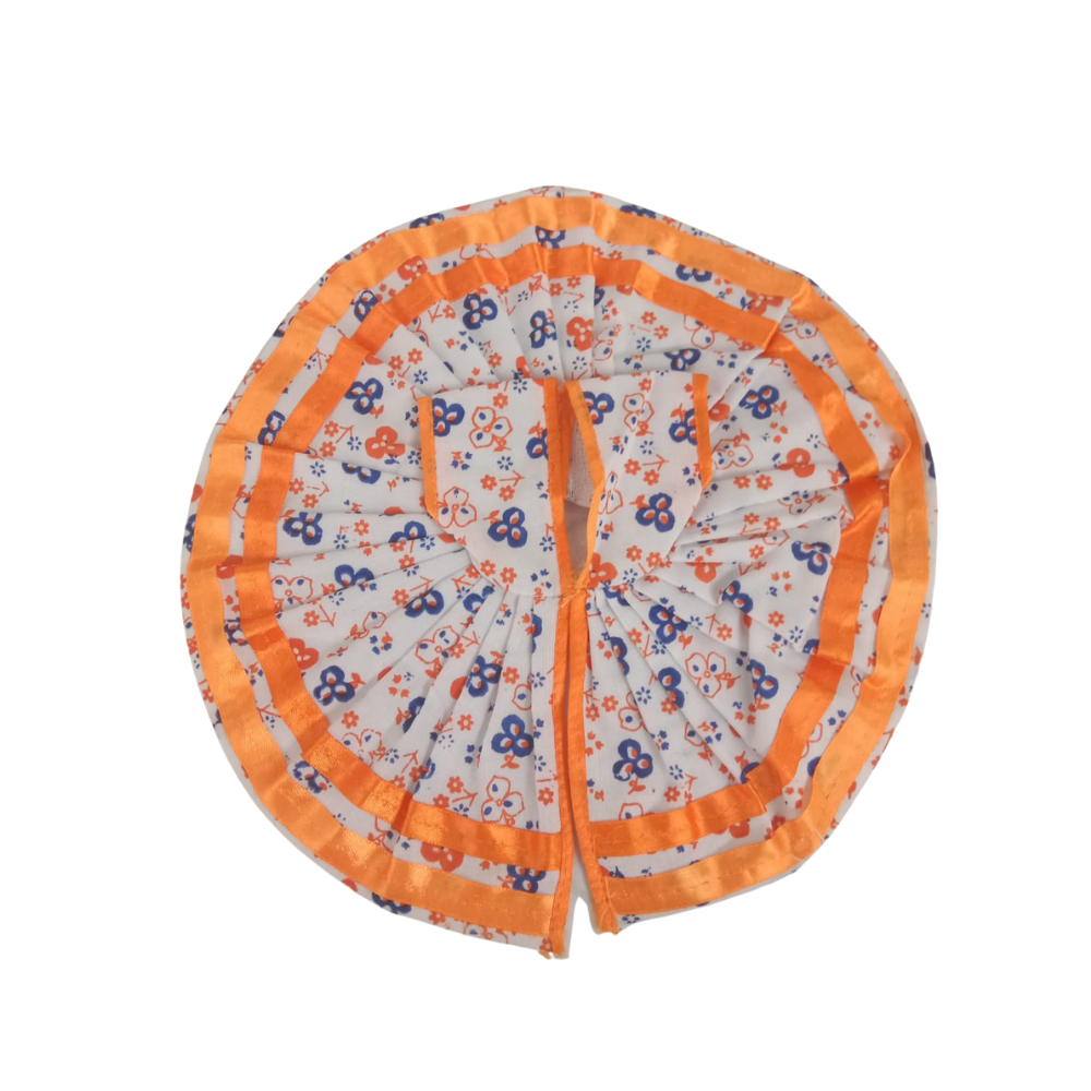 The design is characterized by fine detailing and bright colors reflecting a summer mood of purity and happiness. Each stitch of this garment would spell care, devotion, and, finally, a neat, graceful cut to add to enhancing the divine aura of the idol. The poshak would fit idols measuring approximately 6 to 7 inches, and the tie is secure enough to provide a comfortable yet tidy drape that stays all day.