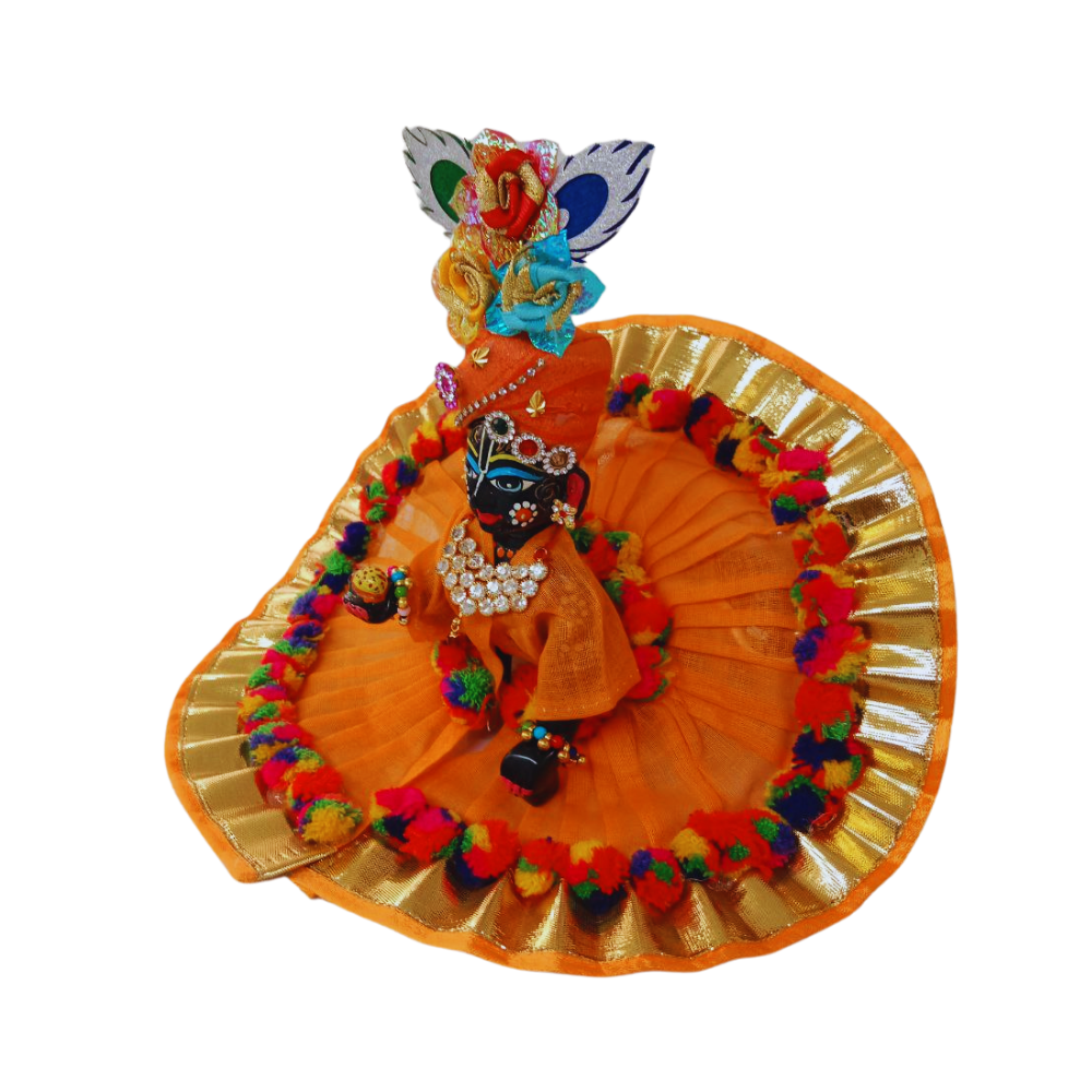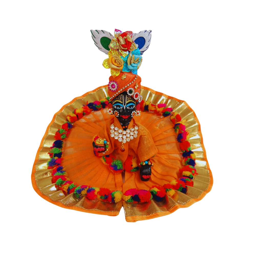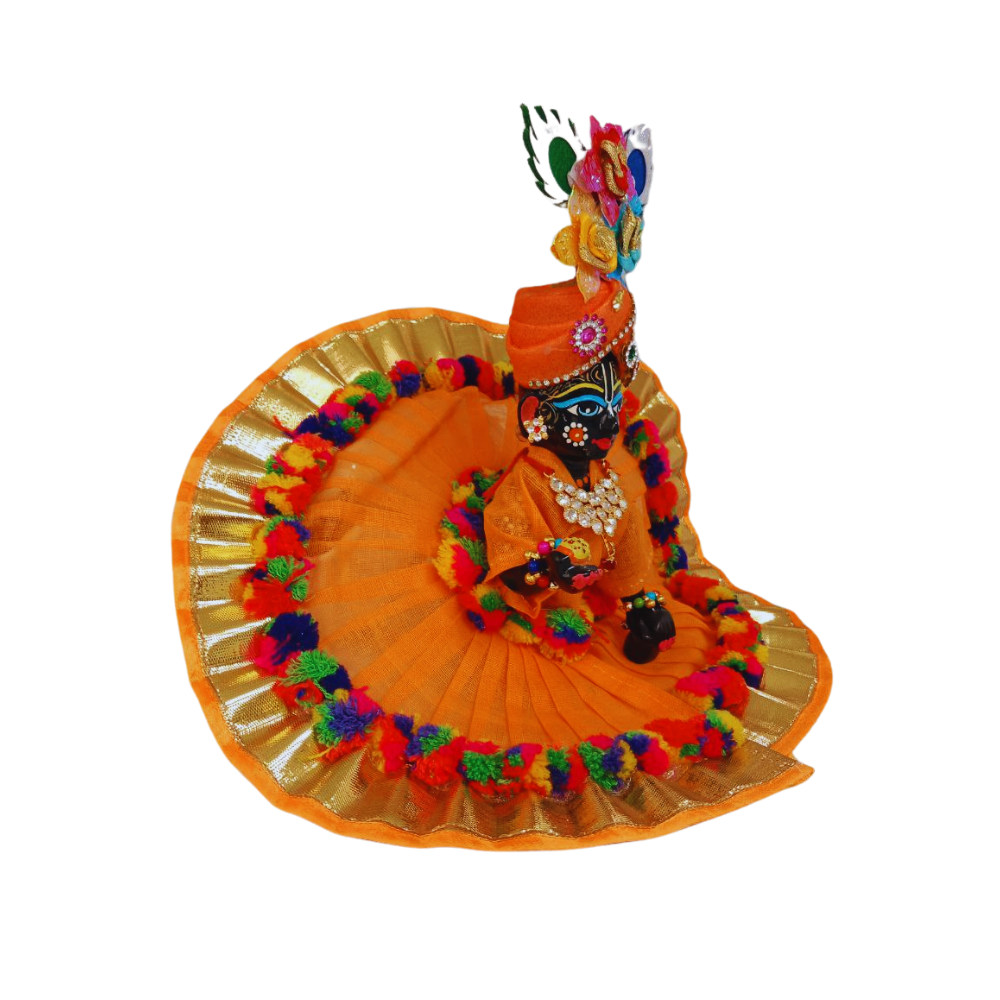 This dress can be matched with other accessories like mukuts, malas. And flutes to ensure a fully decked-out, harmonious appearance for your idol. Whether you are preparing for a seasonal celebration or giving your deity’s wardrobe some updates, this dress strikes just the right balance between beauty and functionality.