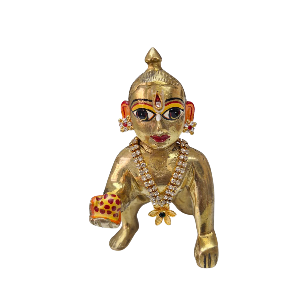 The artwork on the Laddu Gopal has been created using the best possible materials for durability and style. Besides enhancing the luster and polish of the finish. The stone embellishments ensure that they light up your idol for the years to come. The elaborate details and heavy design speak of elegance and grandeur, making it a true delight to adorn your idol with.